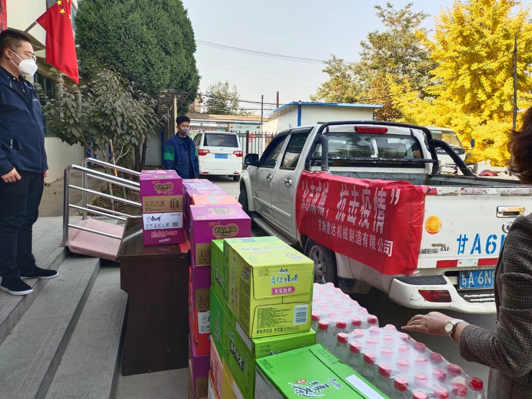 為不影響工作人員的工作,中午過后,我公司將這滿車的愛心物資送到工作人員手上,感謝他們為抗疫工作所付出的辛勤努力和無私奉獻。